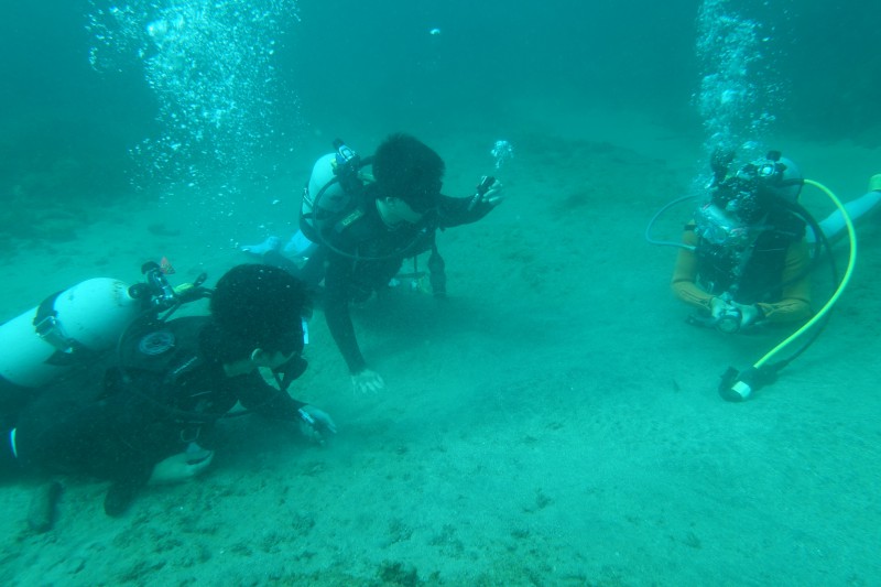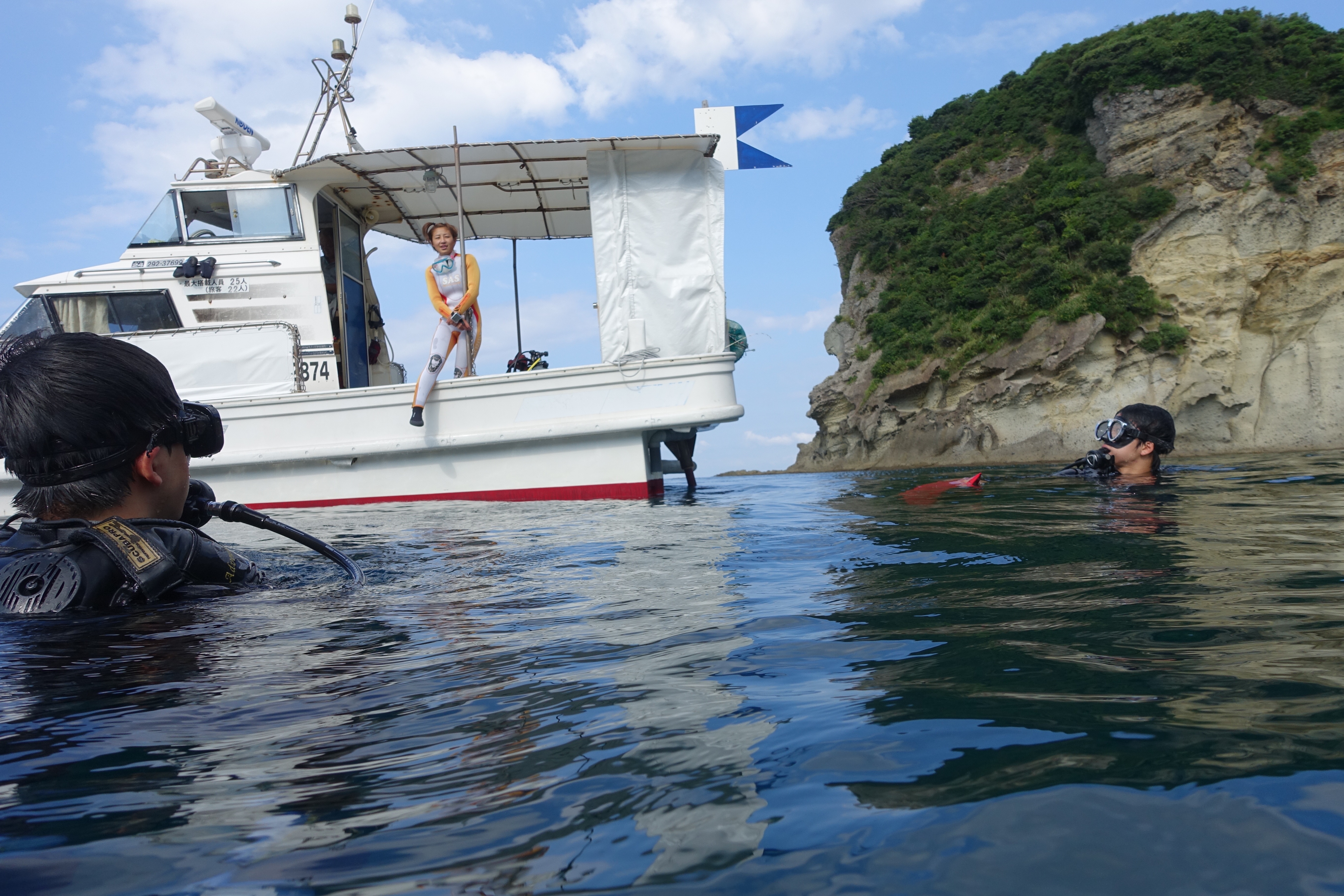 ボートからエントリーして、穏やかな水深4mのポイントでトレーニング!