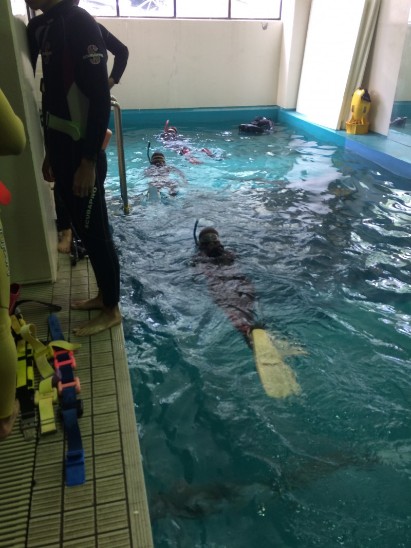 本日もボートでダイビングチームと、プールでダイビングチームに分かれてトレーニング!