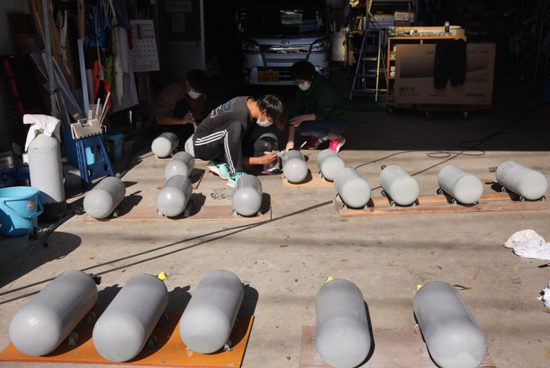 200本のタンクの塗装は1週間掛かり重労働ですが、大切な作業!!
