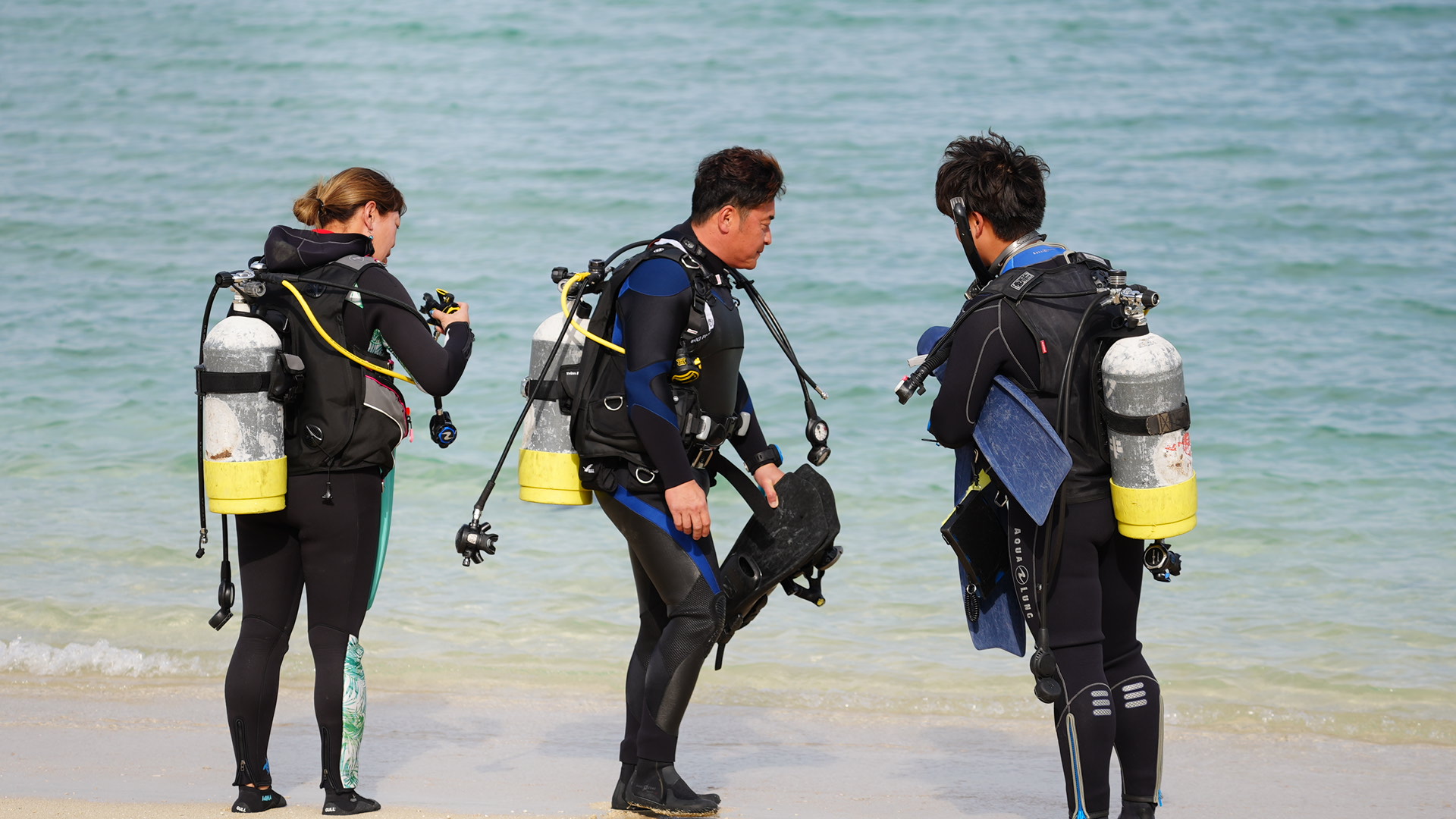 後半コースを担当、うるま潜水 okoさん。(左)